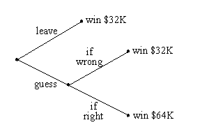 After answering the $32,000 question correctly, players face one of the three possible outcomes given in the tree below: